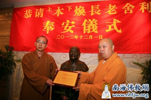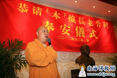 2012年12月1月上午9时,深圳弘法寺于佛学院大堂隆重举行恭请本焕长老舍利奉安仪式。深圳弘法寺方丈、本焕长老衣钵传人印顺大和尚、广州华严寺方丈印觉大和尚、湖南临湘药王寺住持印修大和尚、江西大金山寺住持印空大和尚等数十位高僧大德和护法居士出席本次仪式。