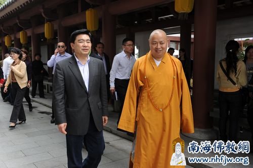 春风和煦,艳阳暖人。2012年3月18日上午,深圳市委书记王荣陪同老领导参观了位于深圳东部华侨城的大华兴寺。在深圳市佛教协会会长、弘法寺方丈印顺大和尚的陪同下,王荣书记一行分别参观了大雄宝殿、妙相禅境、菩提宾舍、观音座莲宝像等。