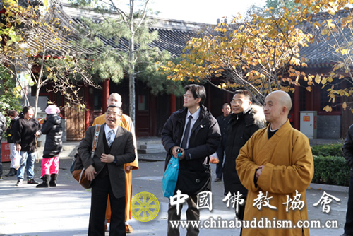2012年11月16日下午,台湾“第三届华人学者宗教研究论坛”学术交流观察员郑英弘先生一行2人参访中国佛教协会。我会国际部李贺敏副主任及广济寺知客能真法师等有关人员,陪同客人参观了广济寺。张琳副秘书长在广济寺会客厅亲切会见郑英弘先生一行,双方就台湾与大陆佛教的有关情况进行了广泛友好的交流,气氛和谐融洽。