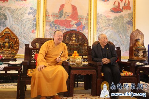 印顺大和尚与王剑非会长进行了亲切的交流,双方就深圳弘法寺、海南三亚南山寺、海南佛教协会与天津佛教协会的互相的友好关系进行了深入的交流。并为了以后的友好合作进行了沟通。