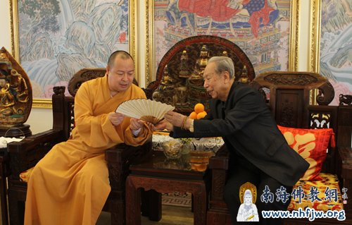2013年4月13日下午中国佛教协会咨议委员会委员、天津市民宗委主任、天津佛教协会会长86岁高龄的王剑非一行参访深圳弘法寺,受到了中国佛教协会副会长、海南省佛教协会会长、湖北省佛教协会名誉会长、深圳市佛教协会会长、弘法寺方丈印顺大和尚热情接待。