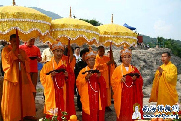 2008年10月17日(农历九月十九日),海南省三亚市南山寺冥阳两利水陆法会圆满送圣。此次法会由南山寺方丈新成法师主法,四众弟子千余人参加法会。