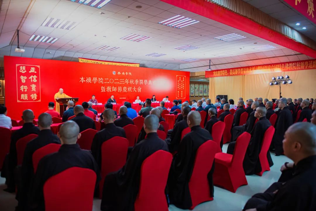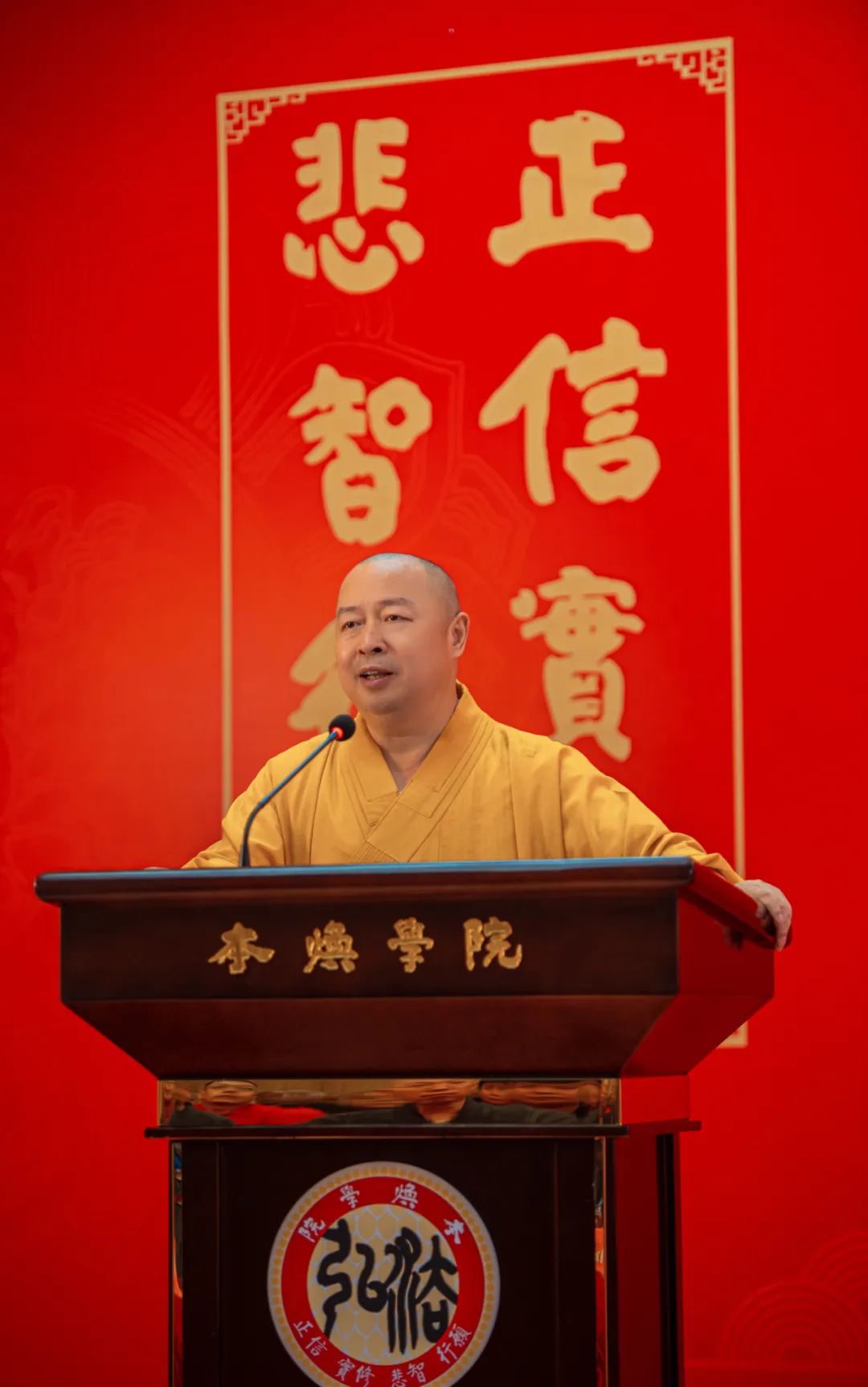 2023开学典礼 本焕学院 一城一寺一禅院 伴山伴水伴丛林 ——在本焕学院2023年秋季开学典礼上的致辞 尊敬的各位领导,各位法师,亲爱的同学们: 大家上午好! 斗柄西指,天下知秋。当世界的光影随着一片秋叶的飞扬开始流转,当命运的齿轮追寻一阵青春的节拍开始转动,我们相逢在这一生最美的时刻。值此本焕学院2023年秋季开学典礼的法喜时刻,我们共同见证60多名本科新生迈入人生的重大时刻,开启全新的梦想旅程。我代表深圳市佛教界,代表本焕学院全体师生,向各位领导的莅临,表示诚挚的感谢!向四面八方同学们的到来,表示热烈的欢迎! 回首2011年,我们本焕学院首届新生的开学典礼就是在我们此时此刻所在的弘法寺一期经堂,2023年的今天,我们再一次回到本焕学院扬帆起航的港湾,对于我们学院的全体师生来讲,更加意义非凡。 那么如何向初来乍到的同学们介绍我们的学院?上好本焕学院第一堂课?我记得,山东济南作为历史文化名城,湖光山色一直为世人所称道,号称“四面荷花三面柳,一城山色半城湖”。为此,我也归纳了一句话,作为今天开学典礼致辞的主题,这就是:“一城一寺一禅院,伴山伴水伴丛林”。 “一城”是指欢迎大家来到深圳,来到了中国南方最神奇、最发达、最充满活力的城市。回顾过往,无论是最初学院的创建,还是后来的办学模式、教学改革、招生培养等,每一次重大的创新和突破,都离不开深圳这座城市的眷顾、呵护和推举!没有深圳这片敢为人先、拼搏进取的土壤和气候,就诞生不了本焕学院这样的佛学院。本焕学院成长发展的历史,就是伴随深圳共同成长发展的历史,就是深圳城市精神的具体体现和生动实践! “一寺”是指我们的弘法寺。本焕学院和弘法寺都是由中国佛门泰斗、我的恩师本焕长老亲手缔造的。这些年来,弘法寺弘扬本焕长老的行愿精神,探索出了现代都市丛林寺庙发展的新路子,创建了南海佛教圆桌会、新年祈福鸣钟等工作品牌,日益成为深圳发展的文化名片。饮水思源,本焕学院起源于弘法寺,最早是弘法寺创办的僧团进修的内部学校,后来剥离出来发展壮大。“花开两朵,各表一枝”,没有本焕长老的宏大愿力,没有弘法寺的殊胜因缘,就没有本焕学院的前世今生。 “一禅院”指的是本焕学院这所禅宗院校。本焕学院是当代中国唯一以一代高僧命名的佛学院。本焕长老出家80余载,德高望重,法布天下,毕生爱国爱教、悲智愿行,慈悲济世,法雨普施,建法幢于处处,破疑网于重重,为促进中国佛教健康传承、创建发展本焕学院建立了不朽功勋。自创建以来,本焕学院坚定走有中国特色宗教院校发展道路,在全国首创与北京大学联合,首次面向社会招收居士,首开世界佛教大小乘教育融合先例,人才培养扎实推进,越来越成为当代中国佛教院校一方重镇。 “伴山伴水伴丛林”中的“伴山伴水”,是指本焕学院位于美丽的梧桐山下、仙境湖畔,左手临半面山,时时鸟语花香,可以参悟活泼天机;右手栖半面水,处处波光粼粼,可以明心见性。我们在这里笃志学习、潜心禅修可谓得江山之助。“伴丛林”既指本焕学院位于深圳仙湖植物园内,与植物园平分山水胜况,共享深圳城市繁华,同时也指本焕学院源自本焕长老一脉,出自弘法寺法席,与弘法寺互为犄角,相辅相成,一寺一学院形成弘法利生一个完整的丛林体系。 归根结底,“一城一寺一禅院,伴山伴水伴丛林”中,“一城”是根基,“一寺”是源头,“一禅院”是本体,“伴山伴水伴丛林”是道场。了解了这句话,就了解了本焕学院的办学定位和走向,就了解了本焕学院的前世今生,为我们共同构建本焕学院命运共同体缔结了殊胜因缘! 同学们! 丛林生于国土,佛运系于国运。今年是深入贯彻党的二十大精神的开局之年。学海无涯,行者无疆。同学们生逢盛世,作为党的二十大召开后,本焕学院招收的第一批本科新生,在强国建设、民族振兴的新征途上,在坚持佛教中国化,汇入当代青年人才大军的新进程上,我们肩负的使命无比光荣、担当的责任艰巨重大,迫切需要我们将对心之所趋的佛陀向往和追寻,转化为学习的愿力;将我们对浩瀚星空的人生仰望和遐想,转化为奋斗的脚步!为此,我提出以下希望。 第一,希望坚持以学铸魂,应对当下世界之变。世界观是对世界的基本看法和观点,是学院上好第一课的关键。《楞严经》讲:“云何名为世界?世为迁流,界为方位”。“一花一世界,一叶一菩提”。佛教的世界以须弥山为中心,把世界分为三界六道,有三千大千世界、婆娑世界等提法。只有对世界形成基本的看法和观点,才会树立正心正念,端正自己的心神和灵魂,树立好理想信念,从容应对世界之变,不被外部世界错综复杂的乱象所干扰。 当今世界变乱交织,百年变局加速演进,正在进入新的动荡变革期。这就尤其需要我们加强佛法的学习,以此深化对当今世界的认识,牢固树立正心正念,做到“风动,幡动,心不动”。当前最根本的,就是坚持以习近平新时代中国特色社会主义思想为指引,加强社会主义核心价值观引领,弘扬中华优秀传统文化,促进佛教健康传承,从而牢牢把准成长的正确方向,努力让这个世界变得更加清净美好。 第二,希望坚持以学增智,回应当下时代之问。佛学是般若之学,佛法是智慧之法。“佛在世间驻,不离世间法。”离开了当下,离开了社会,佛法便失去了任何存在的价值和意