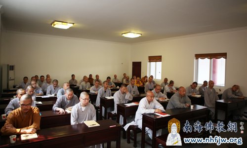 2013年4月6日下午2点,弘法寺佛学院2013执事培训班交流座谈会在三亚南山寺召开。中国佛教协会副会长、海南省佛教协会会长、湖北省佛教协会名誉会长、尼泊尔中华寺、深圳弘法寺、三亚南山寺方丈印顺大和尚,泰国佛教文化委员会副主席、印顺大和尚弟子顿力法师,亚洲共同体关系促进会秘书长栾彬女士,广东省岭东佛学院讲师、深圳弘法寺佛学院教务长宽江法师以及来自深圳弘法寺及下属寺院当家执事近50人参加交流座谈。