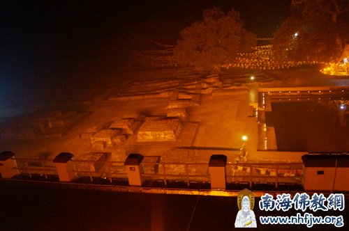 蓝毗尼花园虽然举世闻名,花团紧凑,游人不绝。但是自从恢复以来,香客游人都是白天前来谒拜,入夜以后,整个景区不再有任何声息。几十年来,晚夜的蓝毗尼花园法灯不燃,是全世界佛教徒的深深遗憾,人们盼望佛祖诞生地能够祖灯长明,照耀世间。2011年印顺大和尚荣膺尼泊尔中华寺方丈以后,为能够伺伴佛陀,亲近佛地而感到欣慰。他深知肩上的责任重大,中国佛教的形象始终在他的头脑里莹绕,为了展示中华佛教的宏大气魄,沐浴佛恩不忘祖德,印顺大和尚顺应人心,特地安排专人前来为蓝毗尼花园设计亮化工程,在国内有关单位支持下,经过一年多的努力奋战,蓝毗尼花园设计亮化工程最终完工,并于2013年元旦开始点燃。新建设的蓝毗尼花园亮化工程,用现代化的手段展现了蓝毗尼花园夜晚的良霄美景,高大的佛塔晃射出耀眼的光芒,几十公里之外皆能示现。佛陀纪念博物馆在彩色灯光照耀下,曜曜闪烁,向世人传递着佛陀的爱心。在太子悉达多出生的树下,五彩的灯光就是佛陀成道以后身上放出的永远不落的禅之之光,各种灯光聚焦映照在水池,房屋倒影,树叶裟罗,千灯竟放,圣火永住。蓝毗尼花园绽放的光彩,为佛祖诞生地增添了又一美景,随着蓝毗尼花园彩灯竟映,佛法灯灯相继,为世界各地的香客与游人带来了美的享受。中国佛教徒为世界佛教的发展,再次作出重要的贡献。