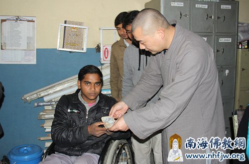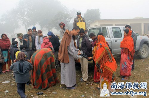人天眼目,三界导师,伟大的释尊于两千六百多年前诞生于蓝毗尼花园无忧树下,农历十二月初八是释迦牟尼佛成道的日子,又是中国传统的“腊八粥节”,在这殊胜而又欢喜的日子,尼泊尔蓝毗尼圣园中华寺常住法师,本着佛陀出世之本怀,发扬大乘菩萨之精神,情系众生,奉献爱心,于1月18日举行慈善活动,中华寺常住法师及信众一行七人在监院明浩法师的带领之下,来到位于尼泊尔博德旺市(BUTWAL)的咖利咖哪迦学校(Kalikanagar School)进行慈善捐赠及慰问活动,分别向该校一些穷苦的学生,捐赠了棉衣、鞋帽等,以及向该校捐赠了办公用品,学生们需要的学习用品及体育用品等。接着中华寺法师们一行又来到蓝毗尼境内的帕日瓦市的一个救助站及一个特困贫苦小学,献爱心,分别发放了大米及布施了衣物。物资所有善款来自中华寺及常住僧众捐款,信徒的捐款,一共五万元人民币左右,所有善款全部购置了毛衣、鞋、帽、袜子及大米等。(文/ 中华寺般舟法师)