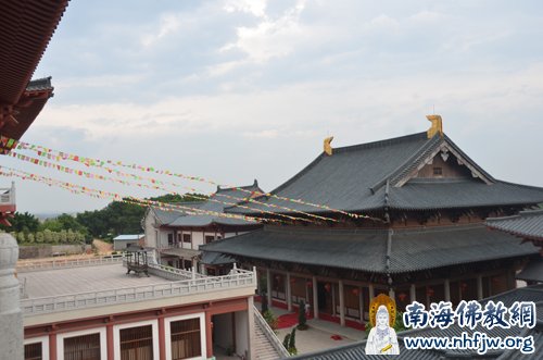 主体为坐北向南的东西两座双层,以钢筋混凝土结构为主体,辅以木结构盖琉璃瓦而糅合中西建筑风格的楼阁,总建筑面积500平方米。阁前庭院宽敞,广种花木。四周围以围墙并另建山门而成一整体。远观则重檐叠脊,琉璃映辉,处近则花香绿荫,环境清幽;登楼则见宽敞明亮,当然也不乏雕梁画栋;而远眺则视野开阔。善信游客、膜拜参观,必心畅神朗,光明之意寓一于此,是东山风景区内——“佛光普照”之明净地。